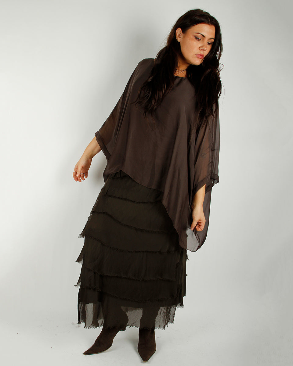 Det perfekte høstskjørtet. Kan styles både opp og ned. Mykt deilig stoff, blikkfang, men uten å være eller føles for kort. Passer til strikk, skjorter eller supertrendy vest. Anbefales!