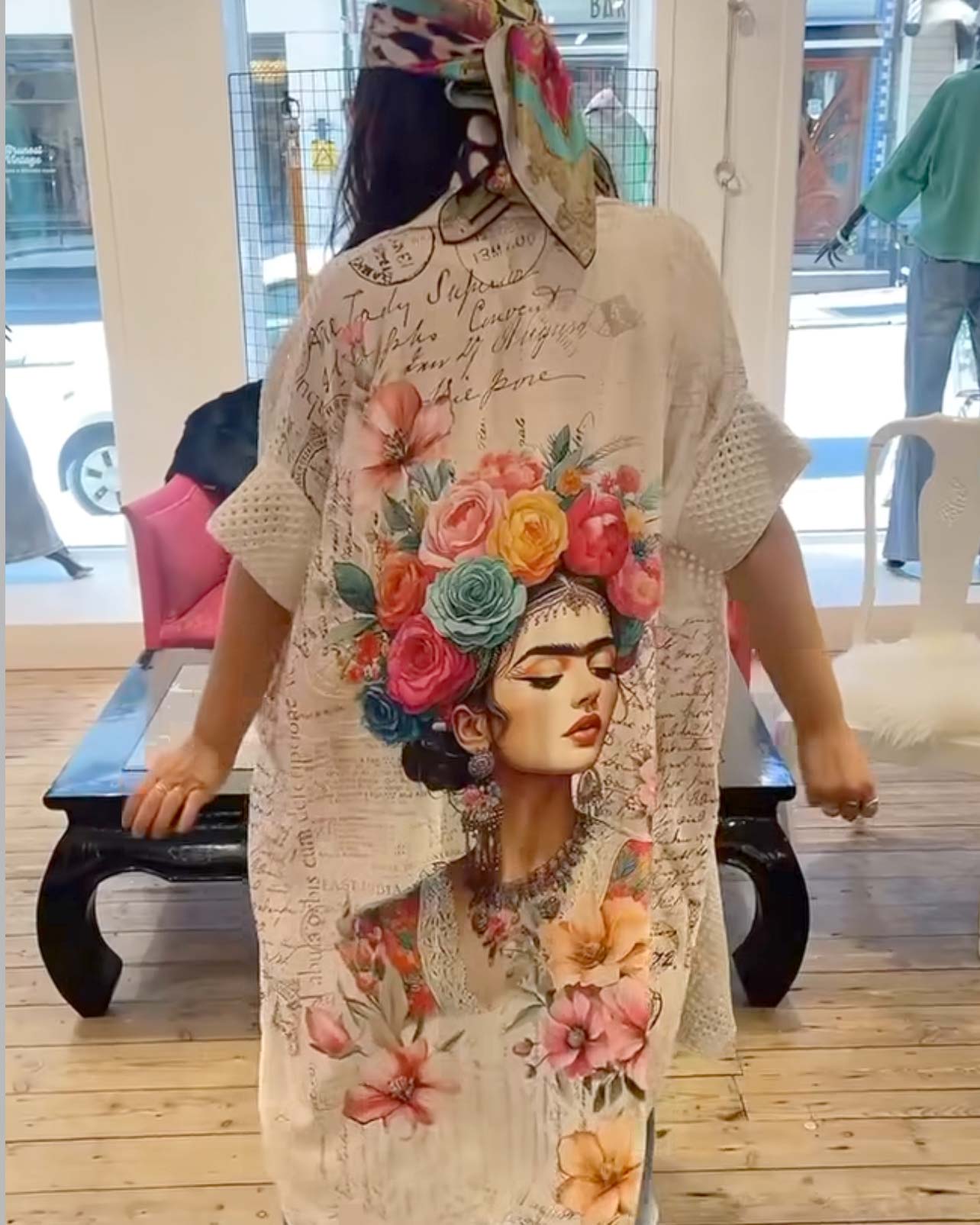 Skjerfet er mykt og i sterke farger, også Frida sin typiske kobolt blåe farge. Mønsteret er veldig typisk spansk/meksikansk og størrelsen på skjerfet er større enn forventet. Nydelig!
