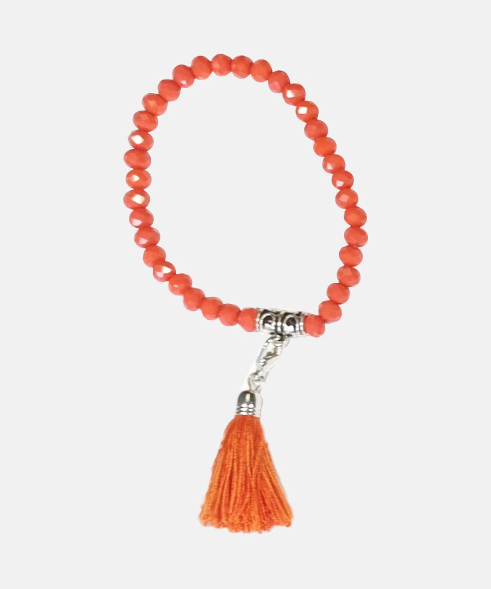 Shiny Bead Tassle Bracelet, Mat Orange