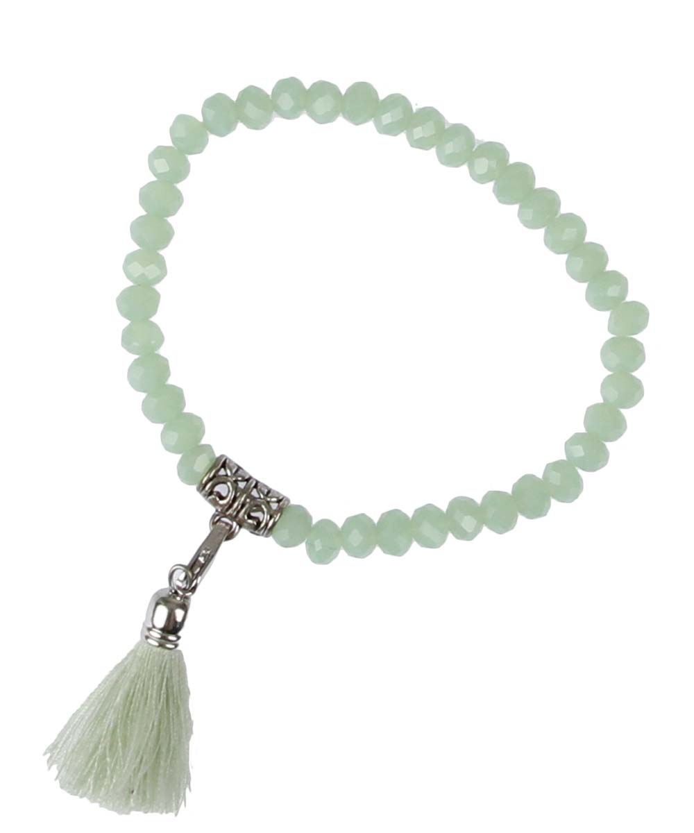 Shiny Bead Tassle Bracelet Mint
