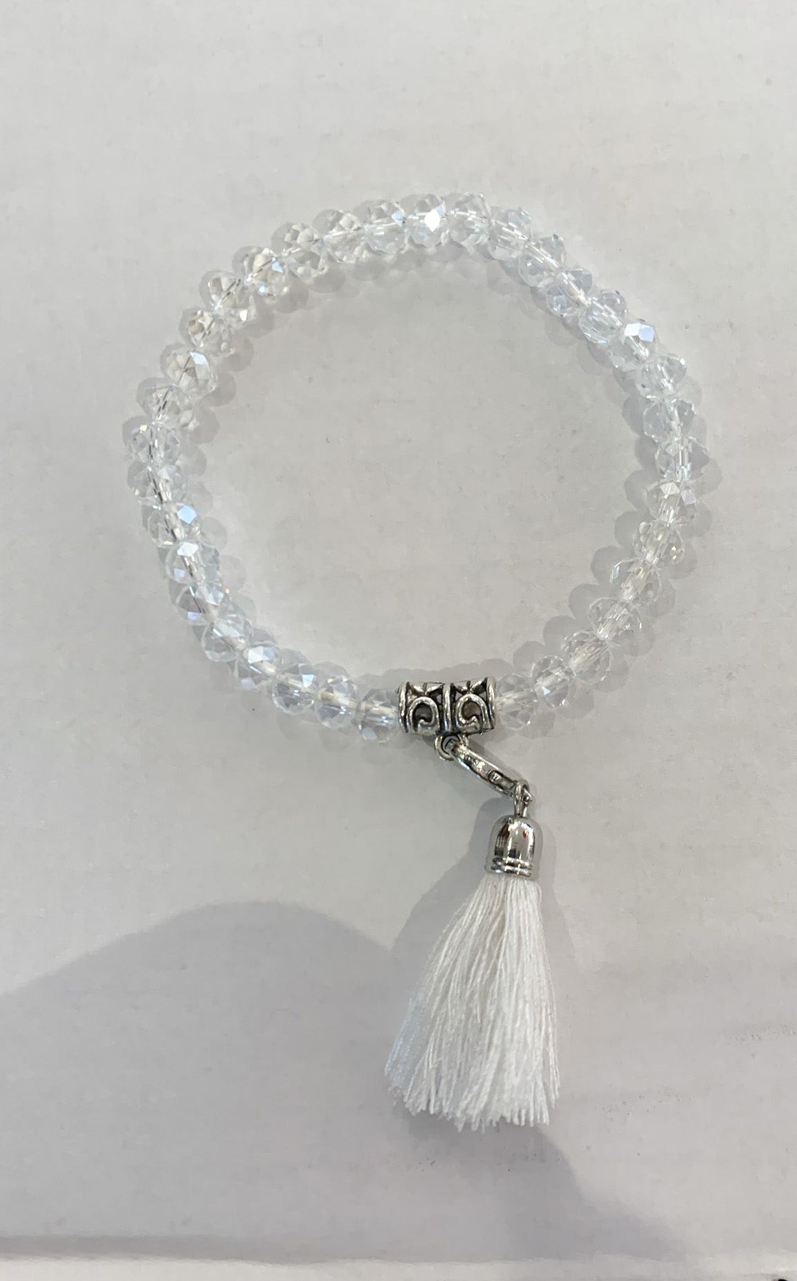 Shiny Bead Tassle Bracelet Transparent White