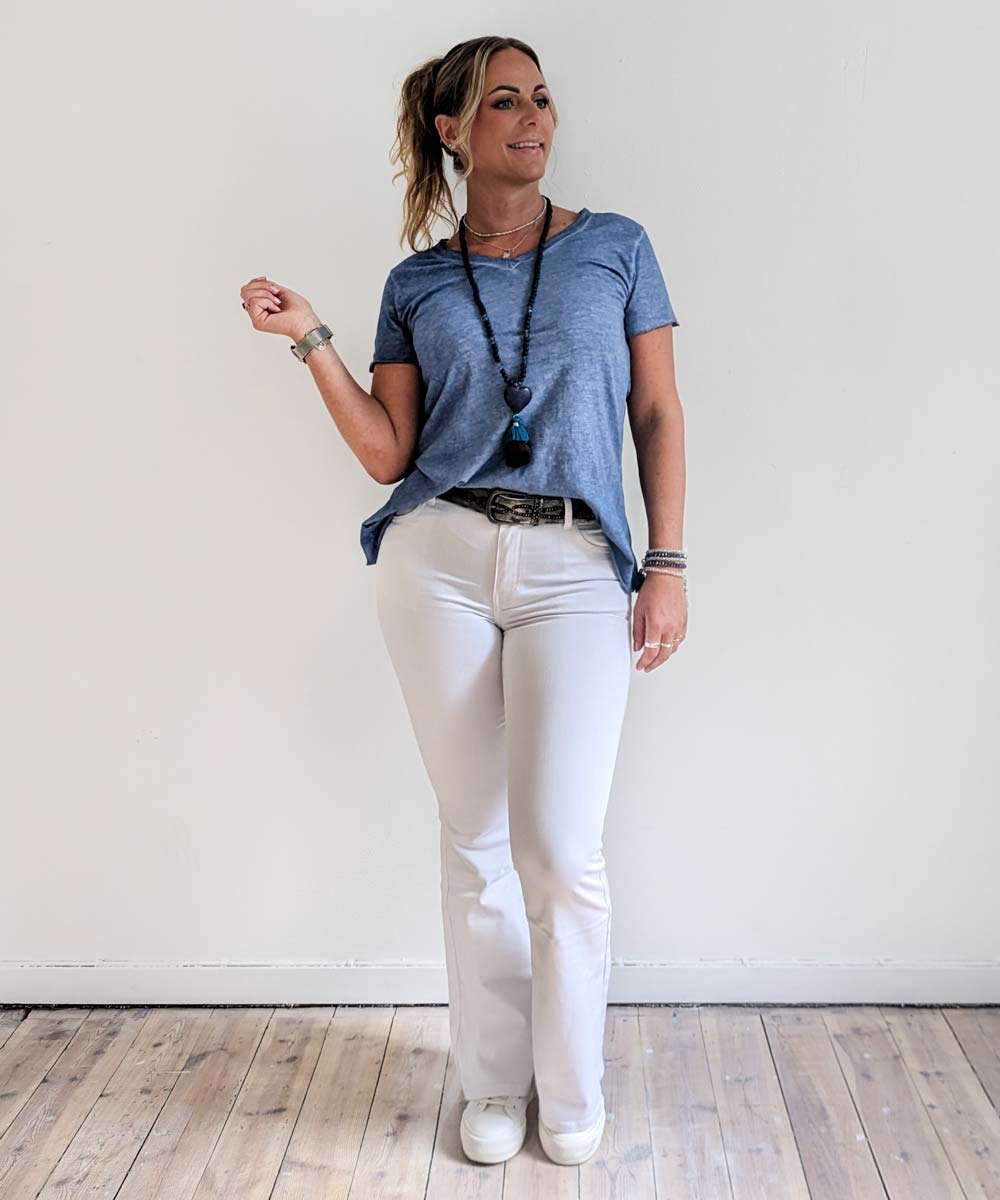 - Hals: V-hals som gir en flatterende og avslappet stil.