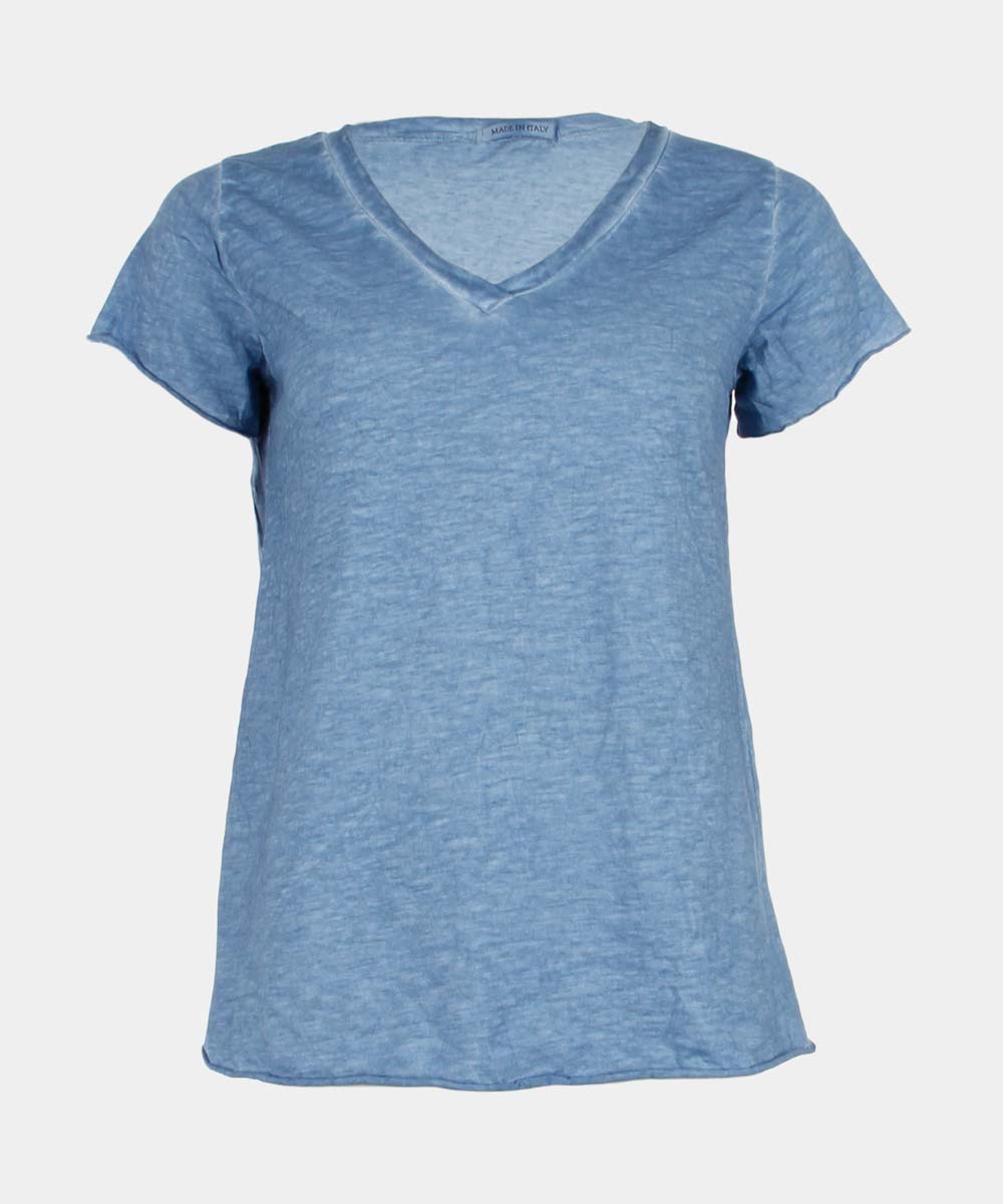 Denne stone washed T-skjorten med V-hals er et must-have i garderoben din, enten du kombinerer den med jeans for en casual look eller med en jakke for en mer sammensatt stil.