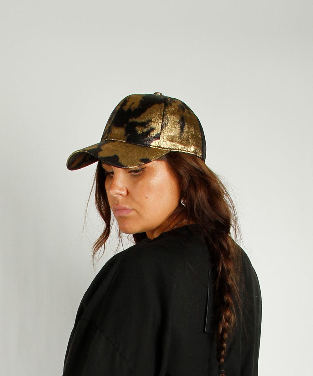 Tøff caps med metallic detaljer.