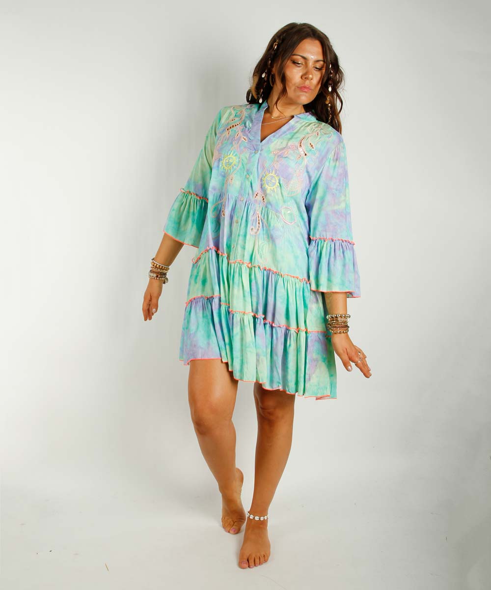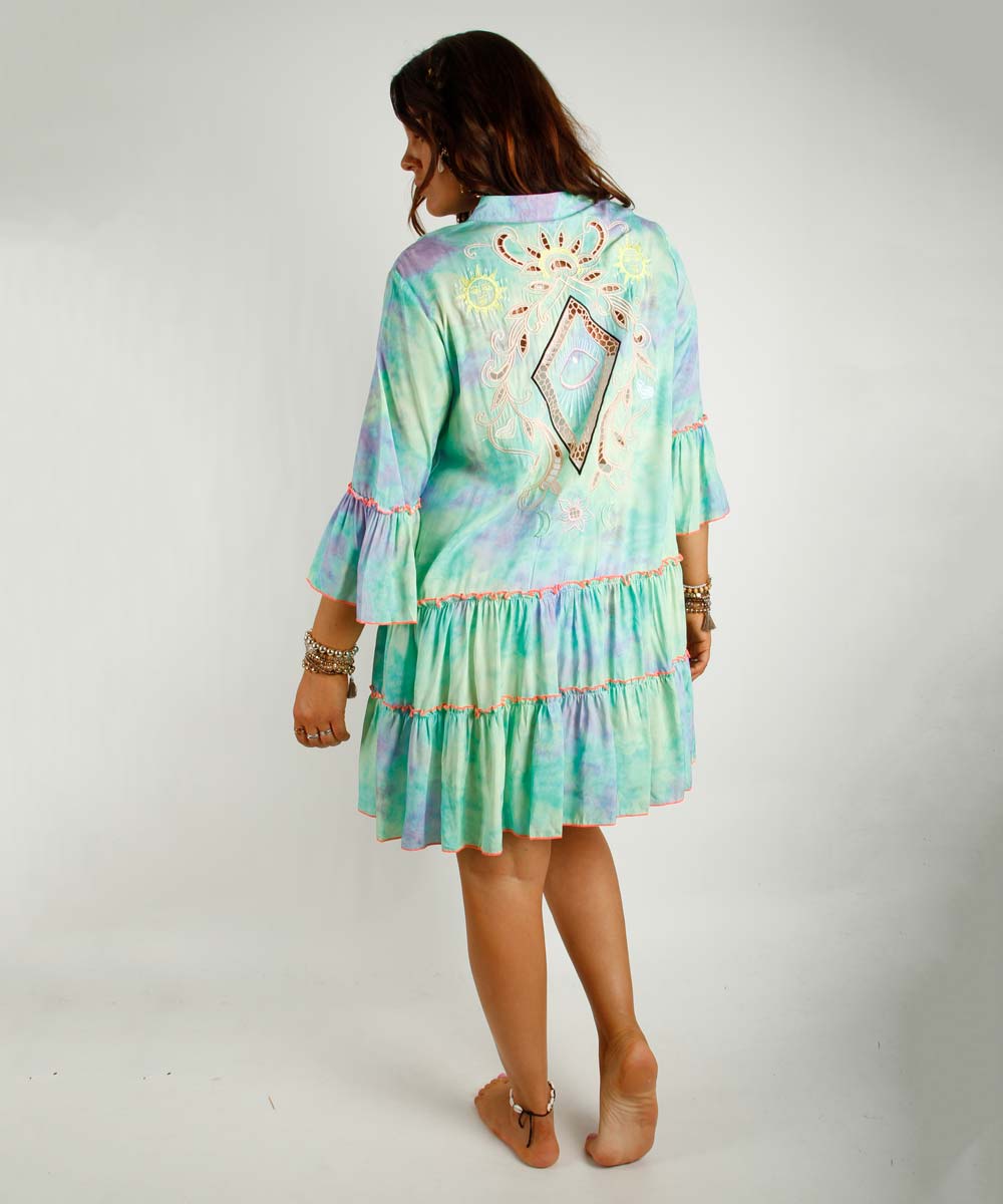Kjolen har bohemsk sol og "see you" øye broderier.