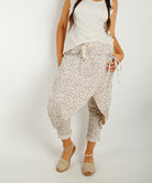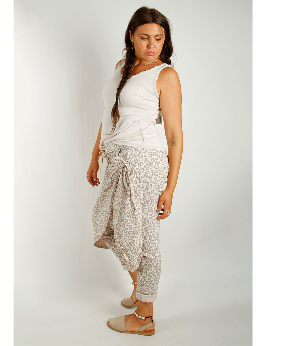 Lette bukser med leopardmønster i myke, nøytrale toner.