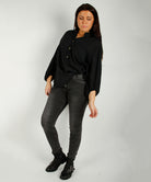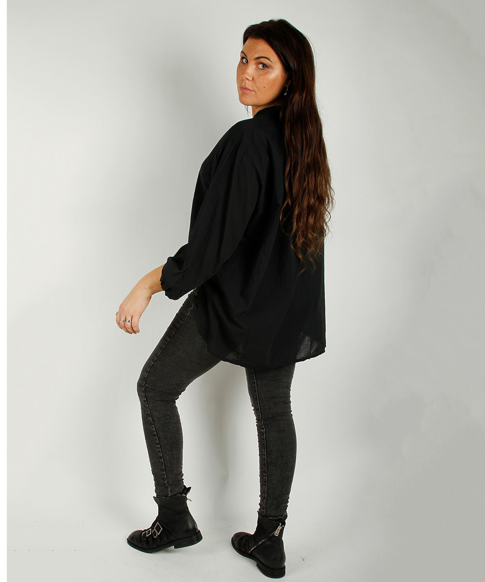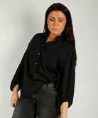 Cotton crew neck blouse, Black