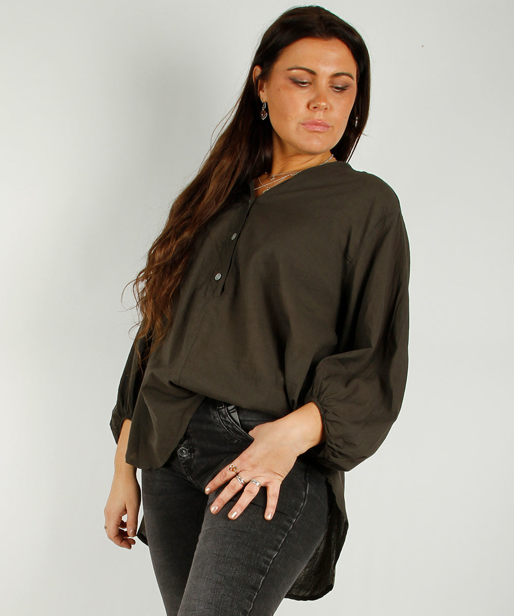 Cotton crew neck blouse,Choco