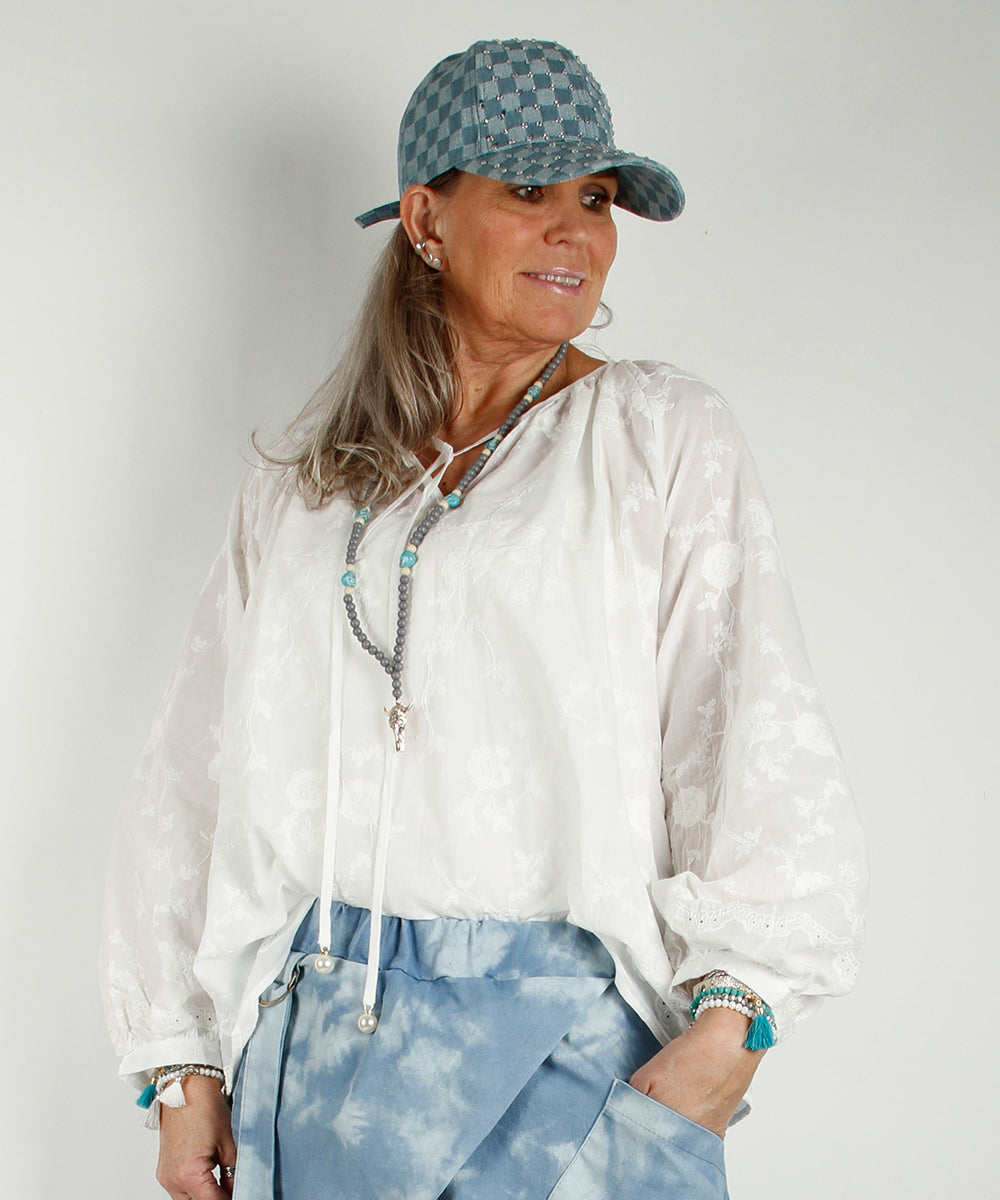 Bohemsk bluse med blomster broderier.