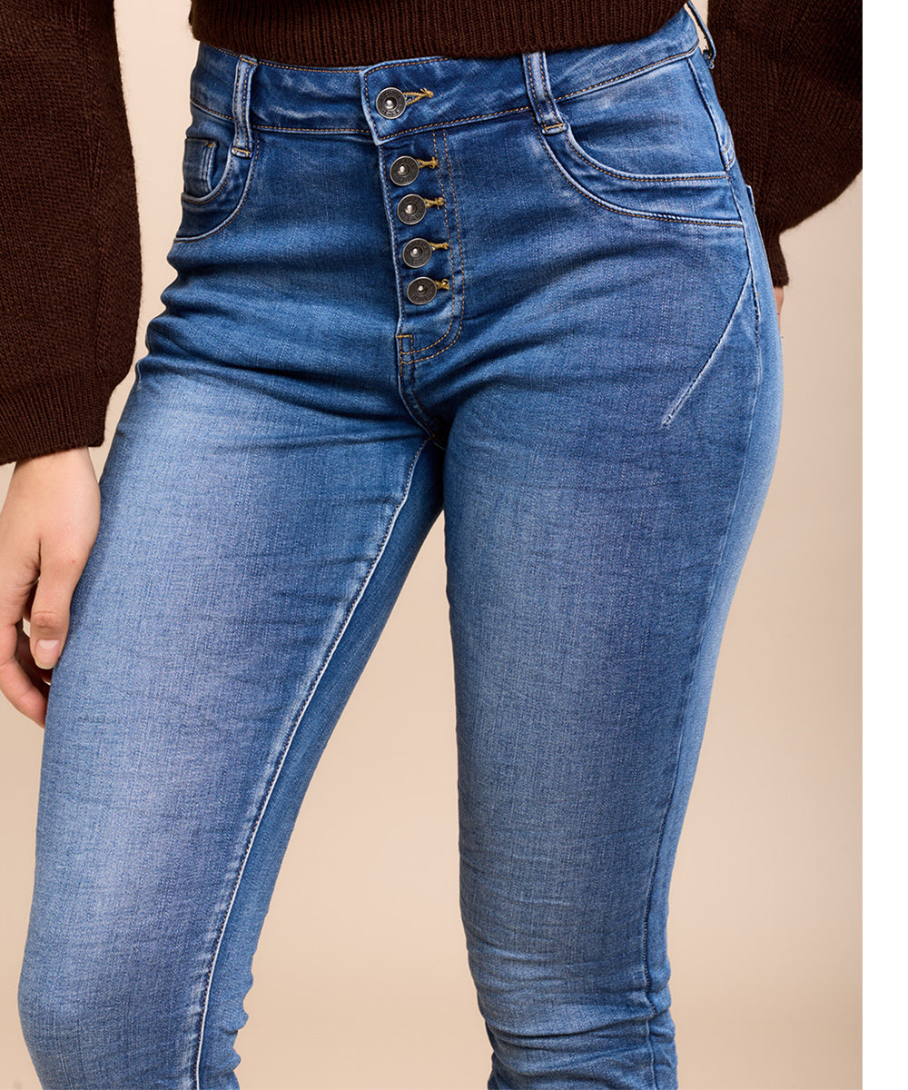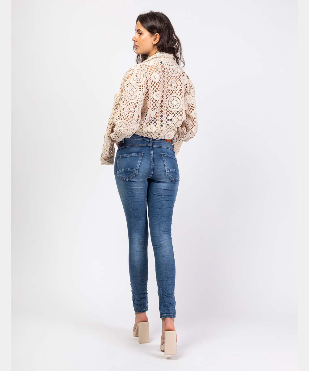 Laget av 56% bomull, 30% viskose, 12% polyester og 2% elastan, gir disse jeansene ikke bare et stilig utseende, men sikrer også komfort gjennom dagen. Maskinvask på 40 grader gjør vedlikeholdet enkelt.