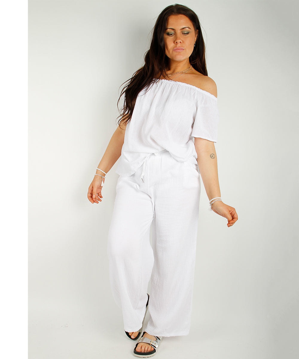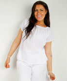 Round neck cotton SS top, White