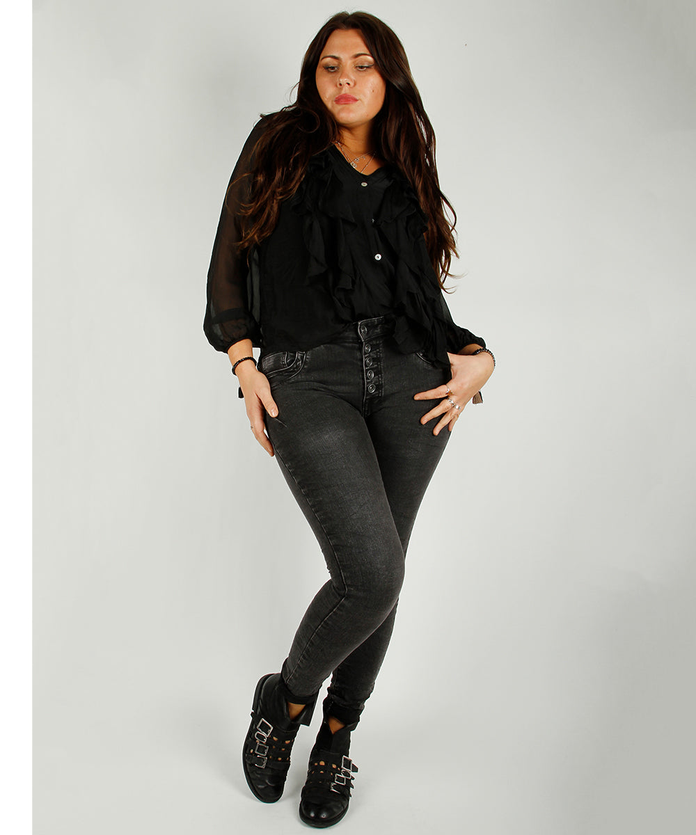 Svart bluse i lett stoff.