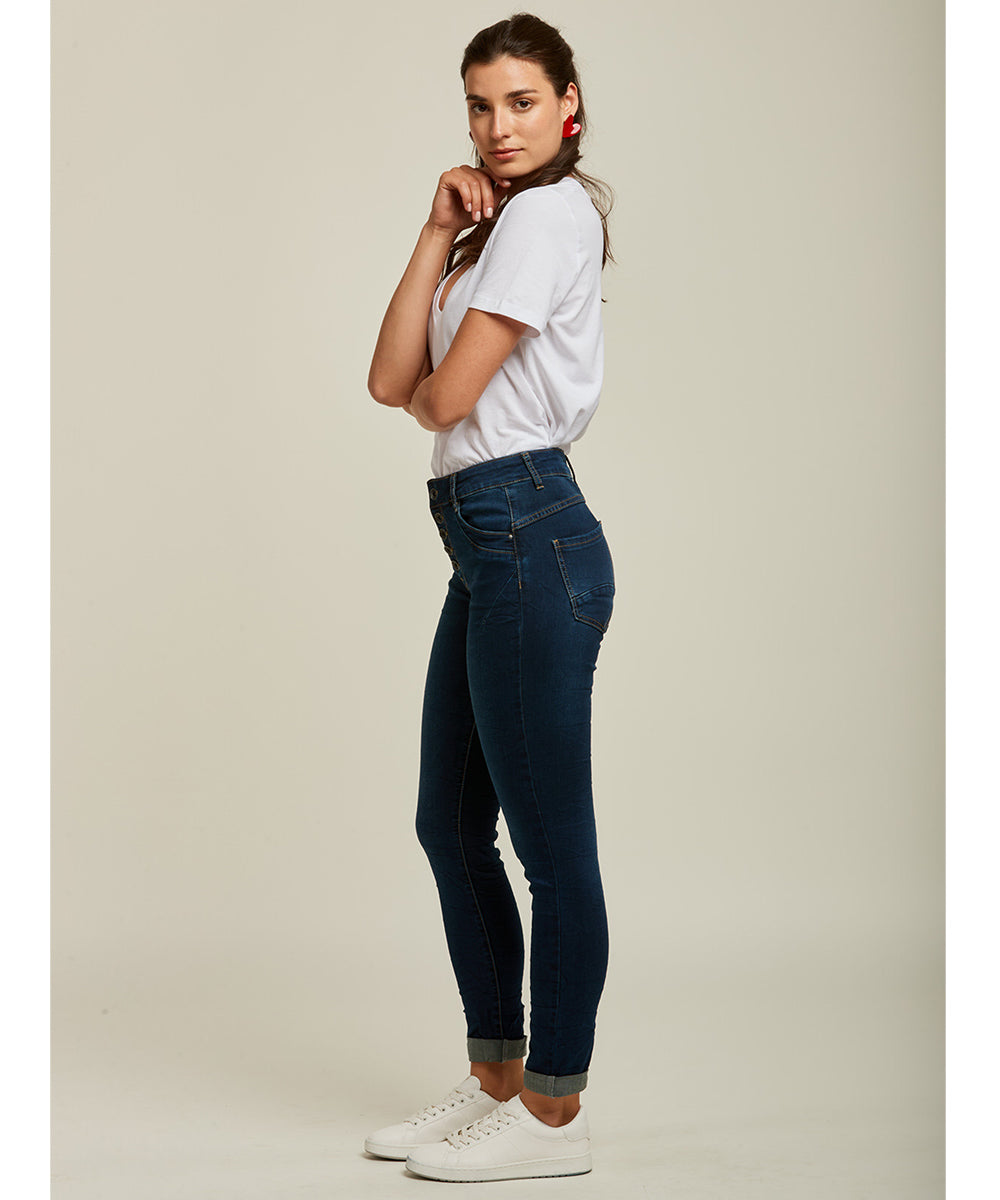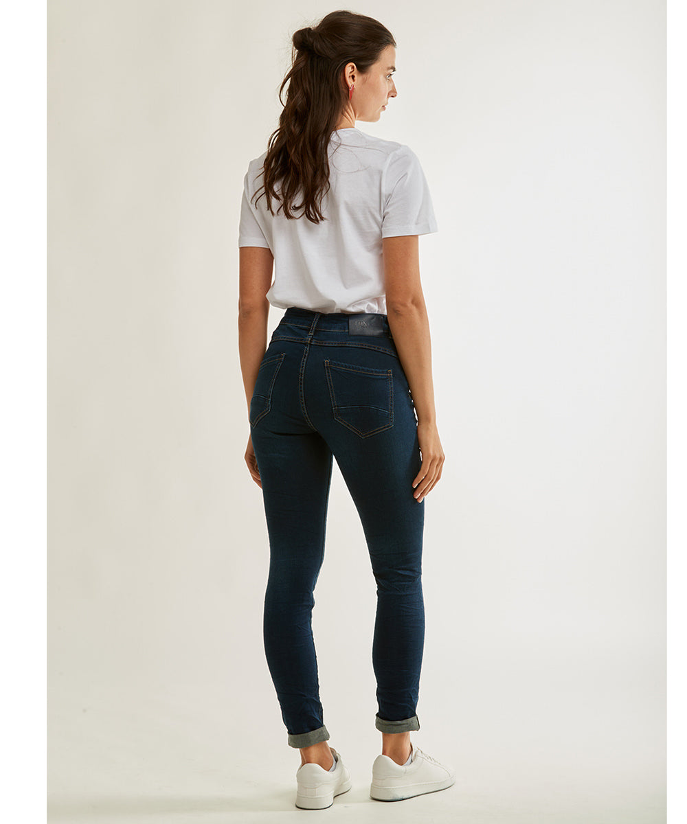 Laget av 56% bomull, 30% viskose, 12% polyester og 2% elastan, gir disse jeansene ikke bare et stilig utseende, men sikrer også komfort gjennom dagen. Maskinvask på 40 grader gjør vedlikeholdet enkelt.