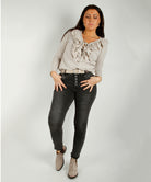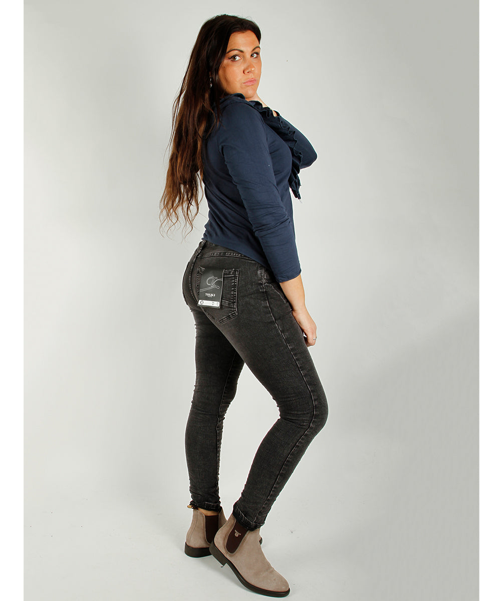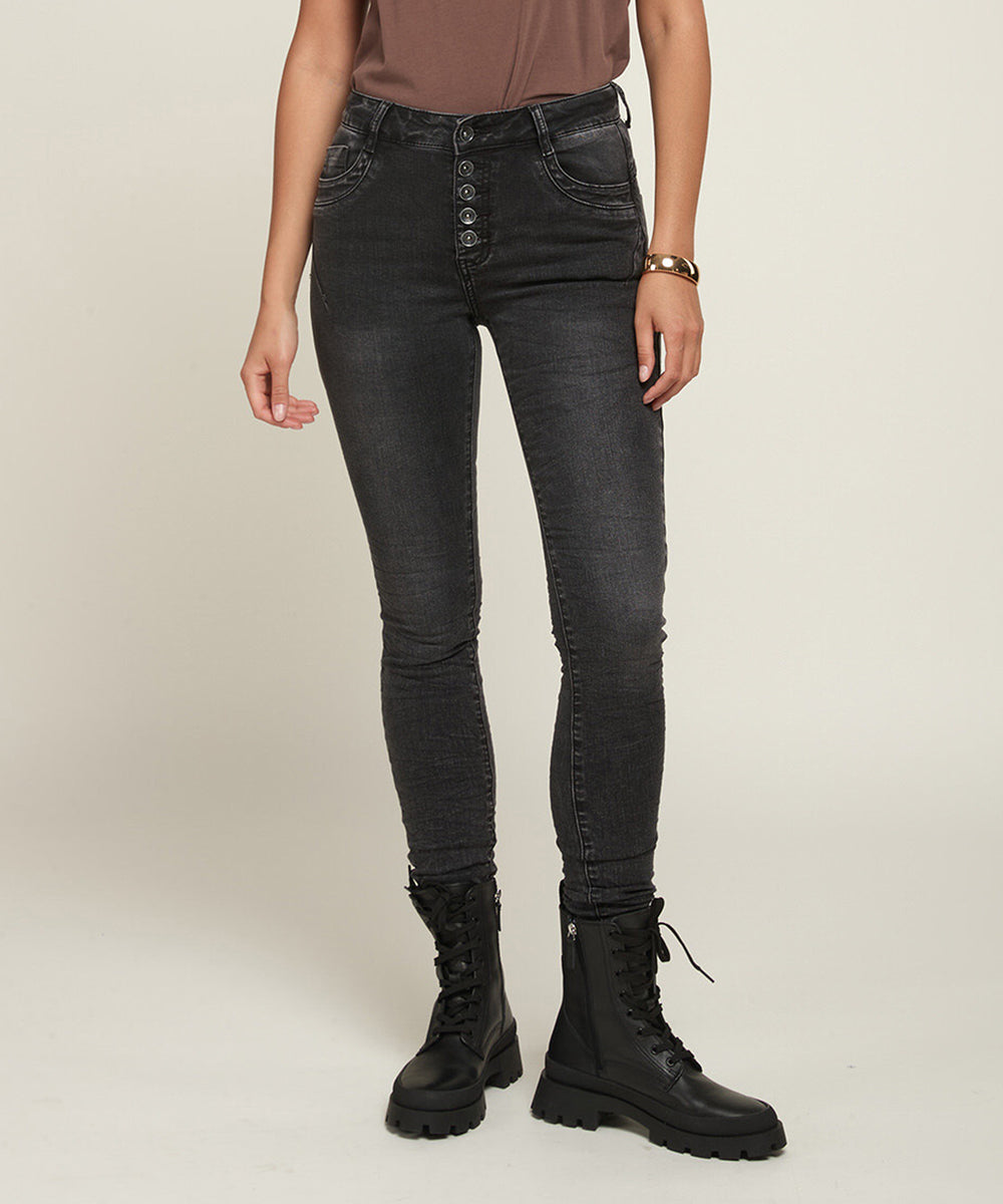 Laget av 56% bomull, 30% viskose, 12% polyester og 2% elastan, gir disse jeansene ikke bare et stilig utseende, men sikrer også komfort gjennom dagen. Maskinvask på 40 grader gjør vedlikeholdet enkelt.