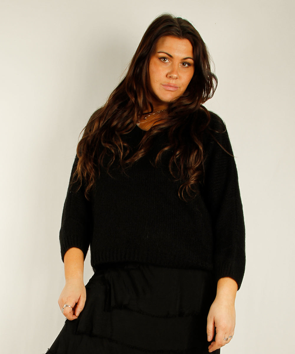 V-Neck mohair knit, black
