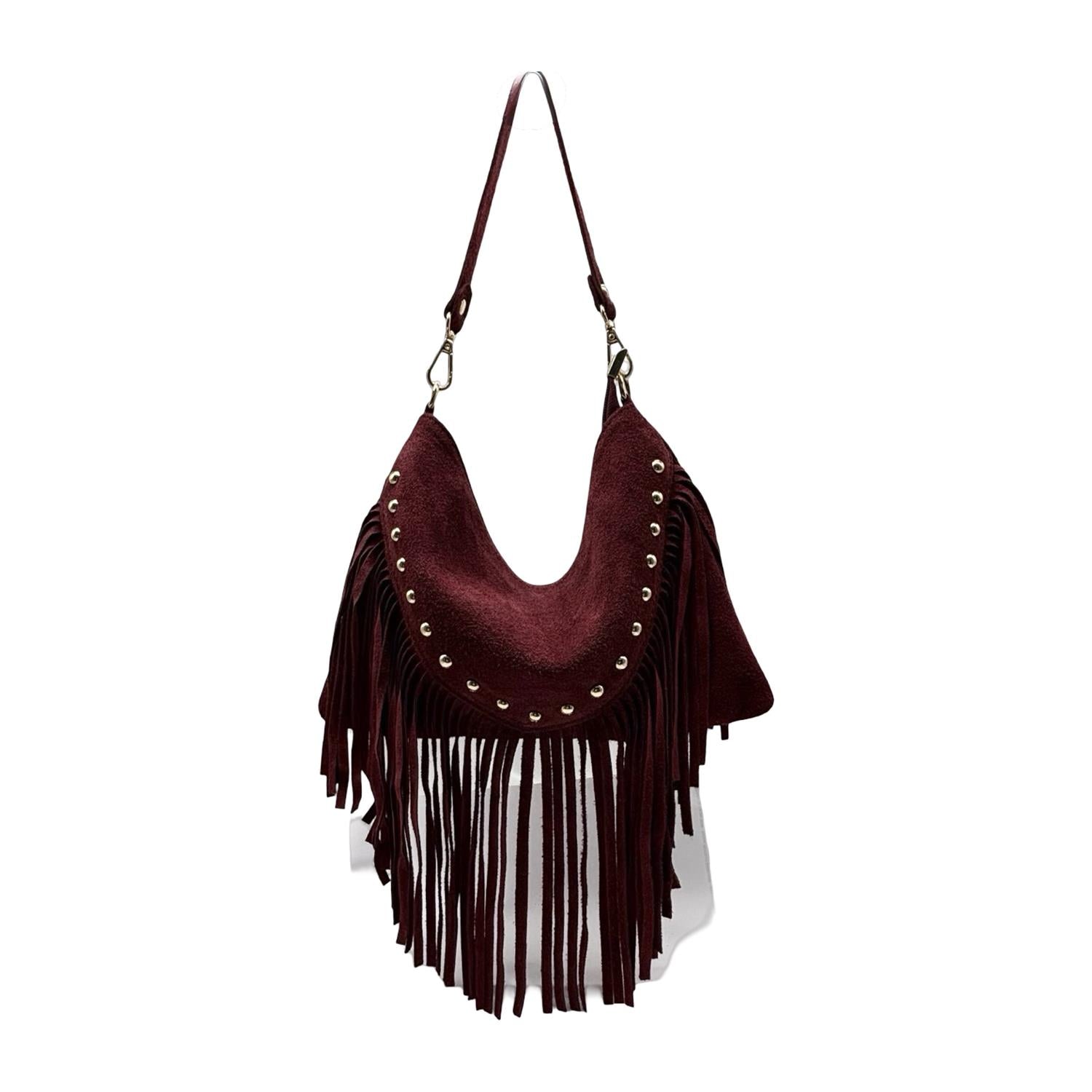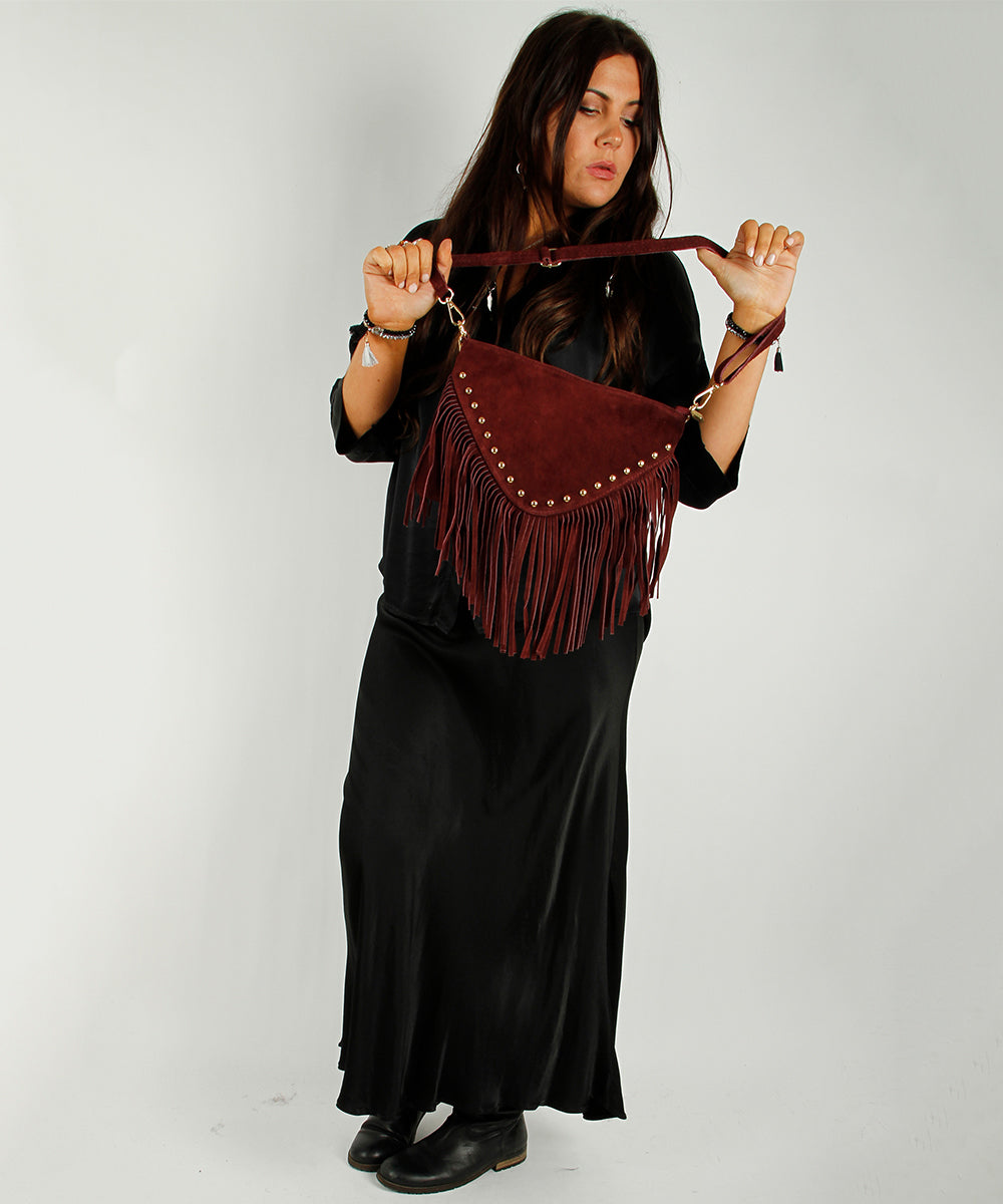Fringe Skulderveske semsket skinn, Bordeaux