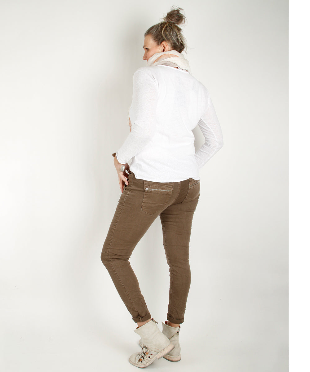 Langermet jerseytopp i bomull. V-hals med 3 pynteknapper. Myk og god stretch.
