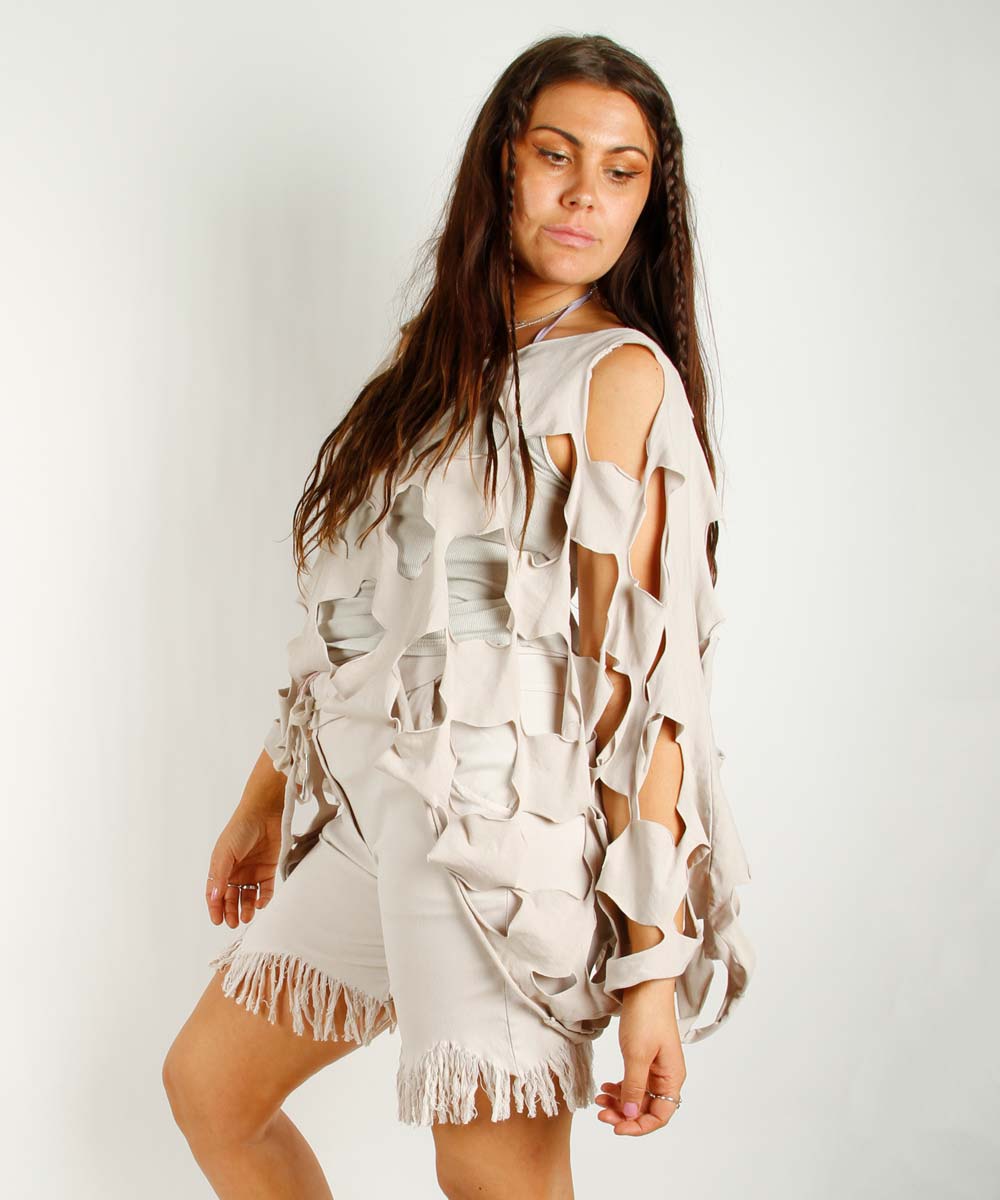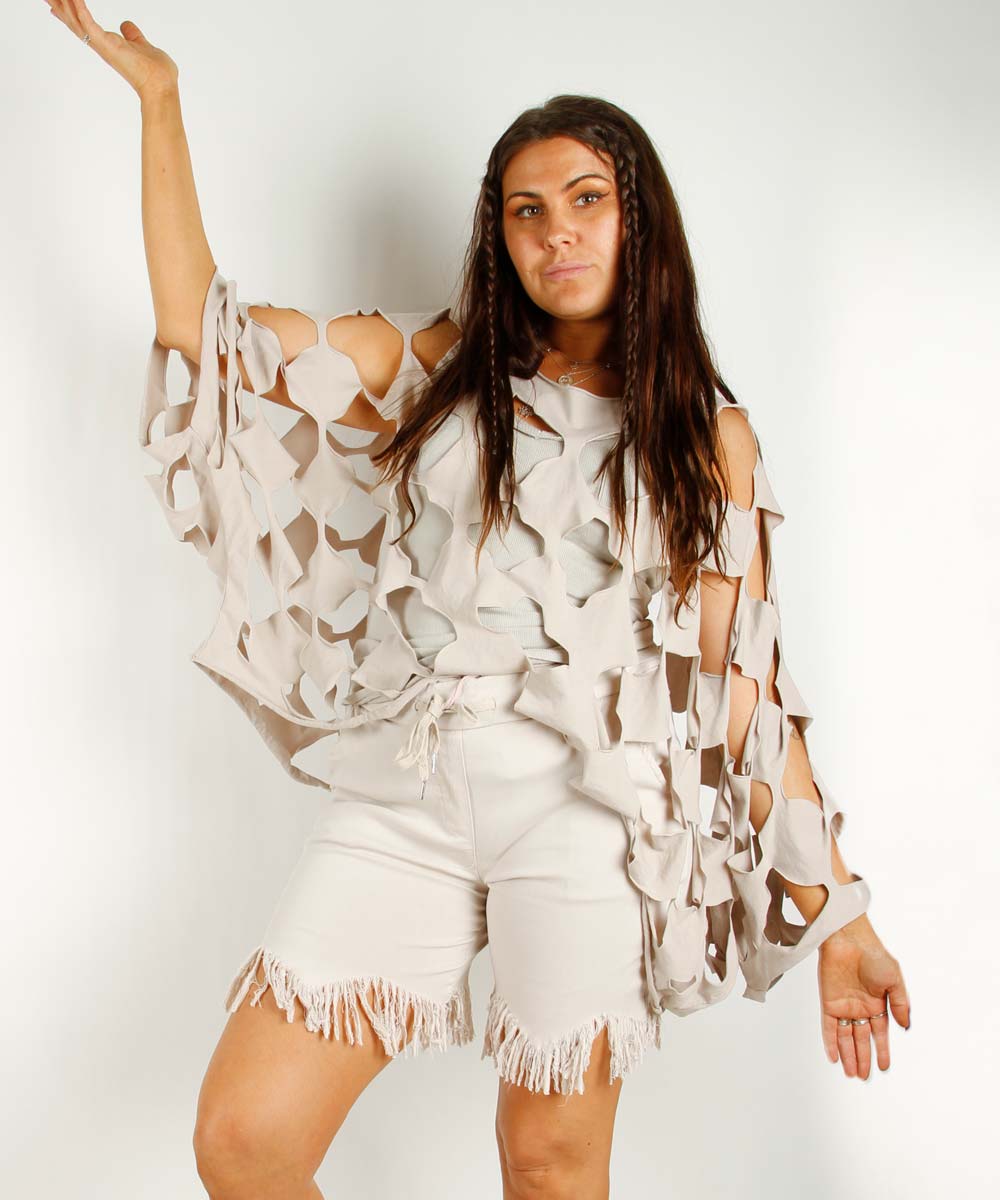 Topp med lange armer og dekorative hull.