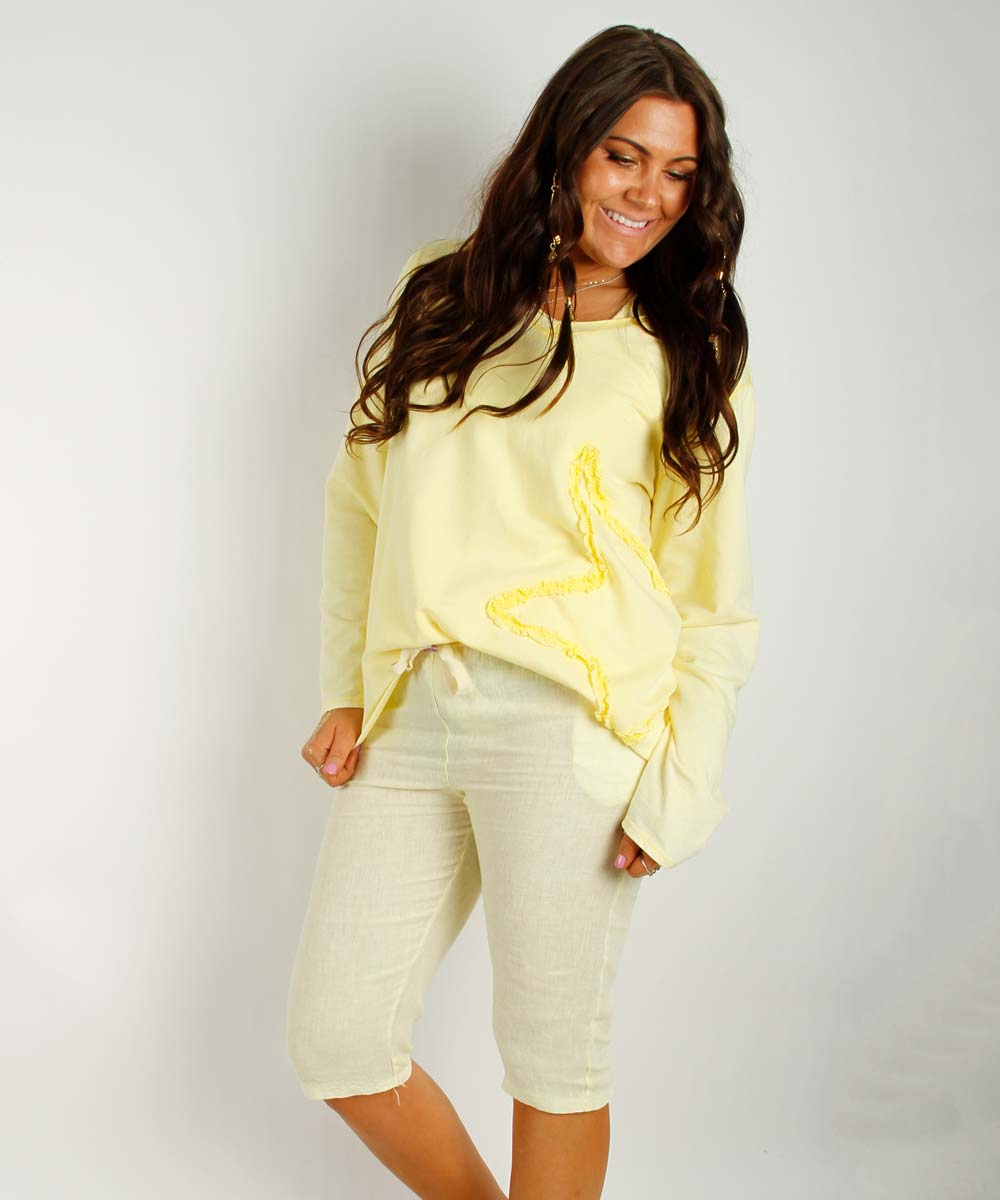 Luftig lin shorts med lommer og en glitter stjerne bak.