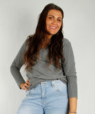 Langermet jerseytopp i bomull. V-hals med 3 pynteknapper. Myk og god stretch.