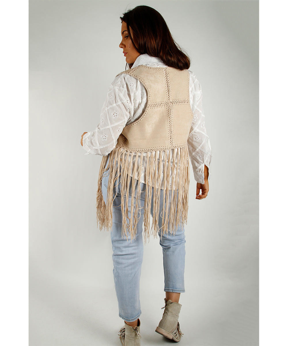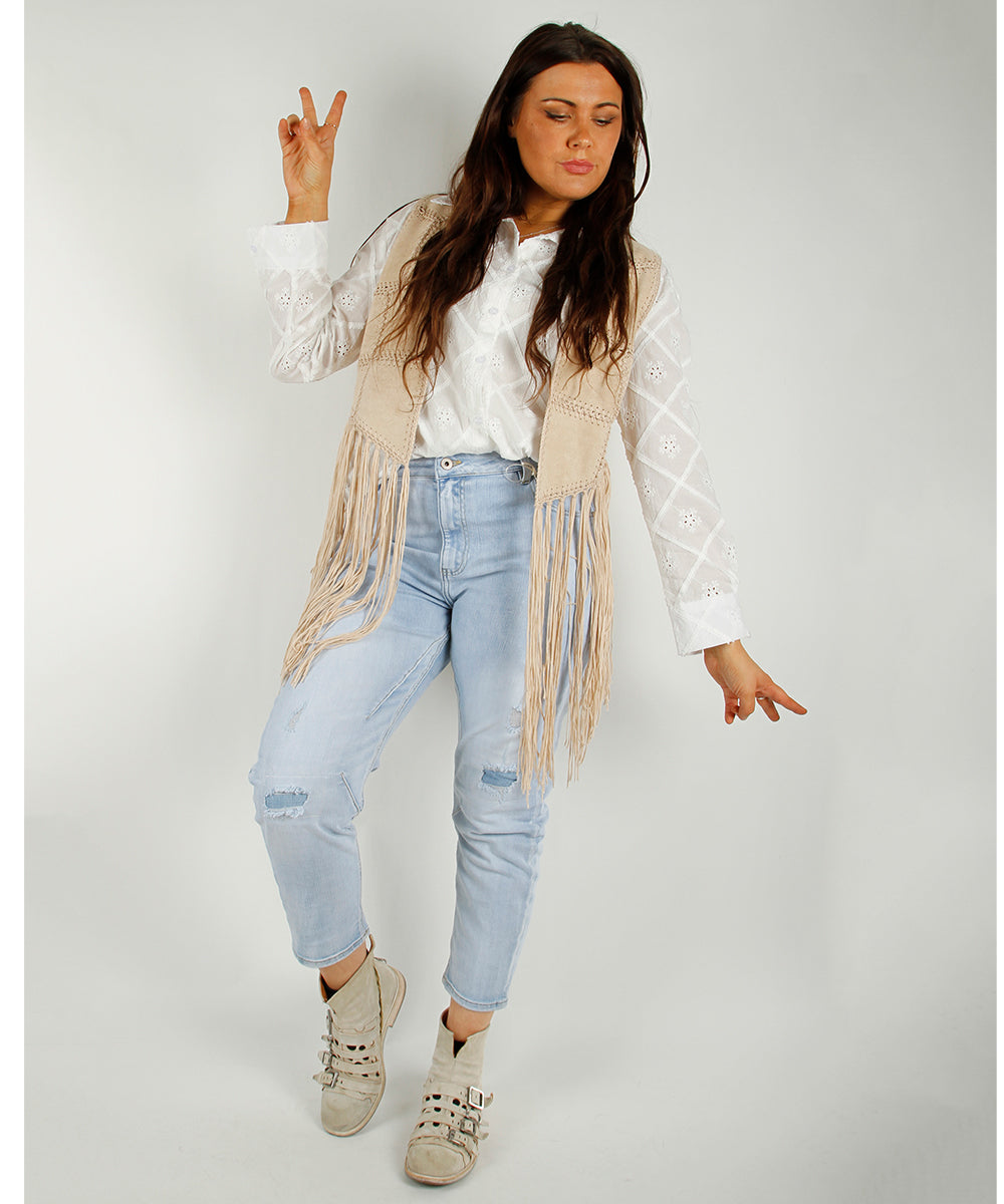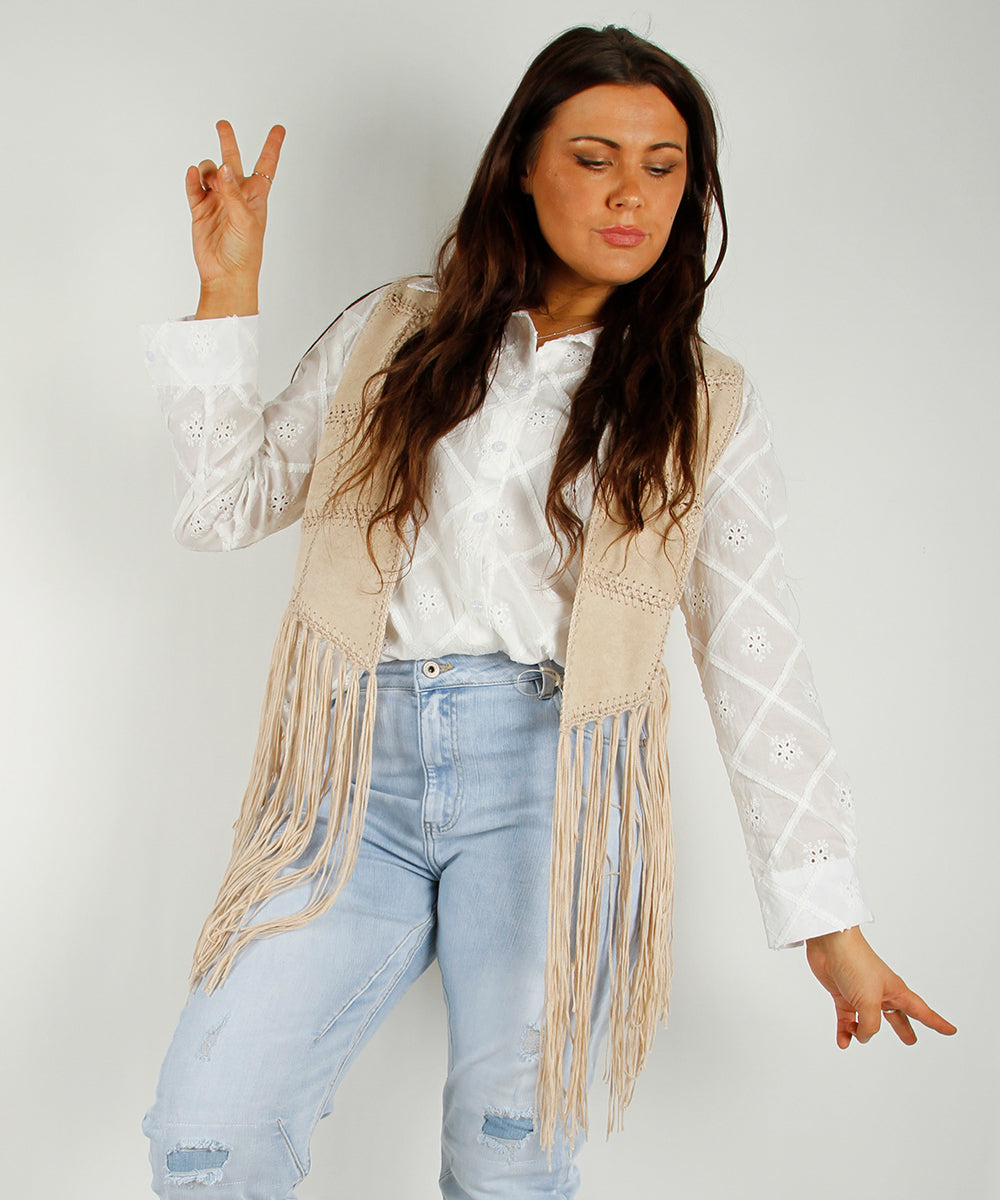 Patch Fringe vest, beige