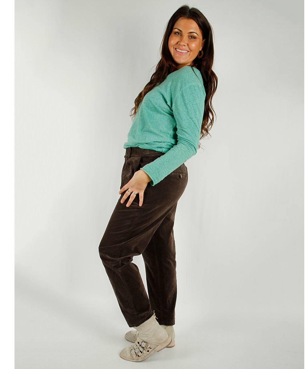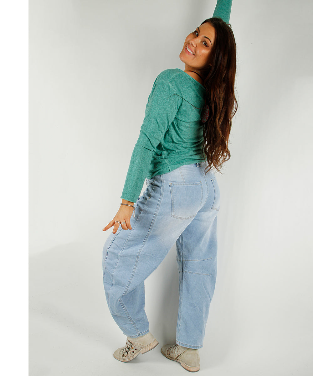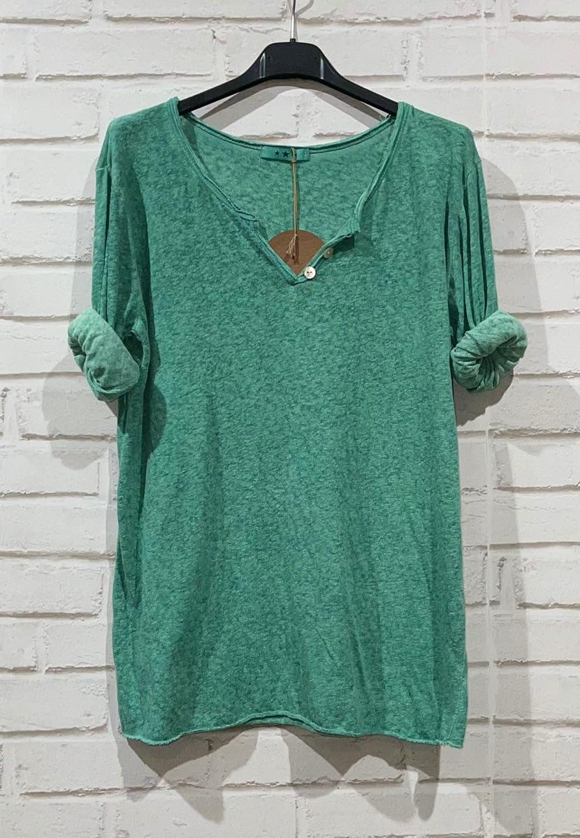 Langermet jerseytopp i bomull. V-hals med 3 pynteknapper. Myk og god stretch.