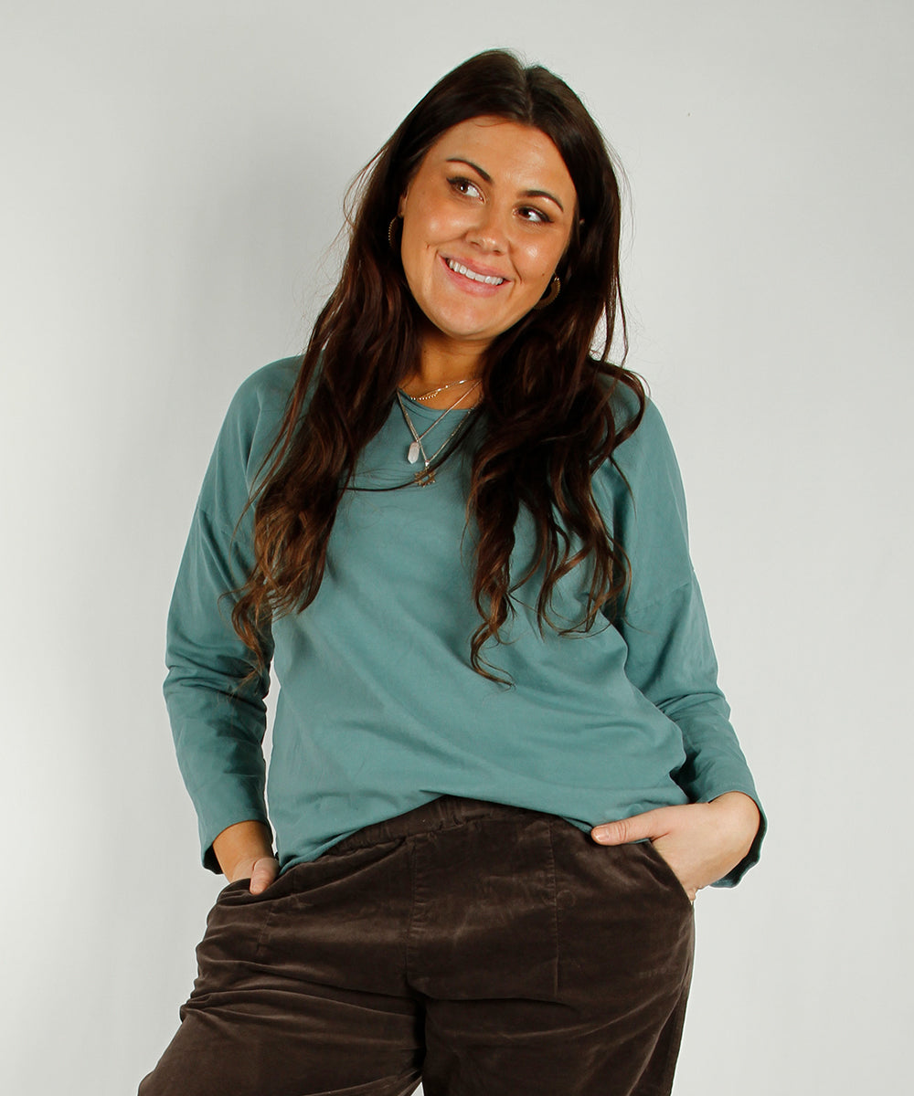 Langermet jerseytopp i bomull. V-hals. Myk og god stretch.