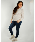 Denne collegegenseren er laget av myk bomull med en behagelig mengde elastan for å gi en fleksibel og komfortabel passform. Genseren har en hette som gir ekstra varme og beskyttelse på kjøligere dager. De lange ermene med lav skuldersøm gir genseren et avslappet og moderne uttrykk, mens den romslige passformen gjør den ideell for avslappede hverdager. Perfekt til bruk hjemme, på tur eller til en uformell stil i hverdagen.