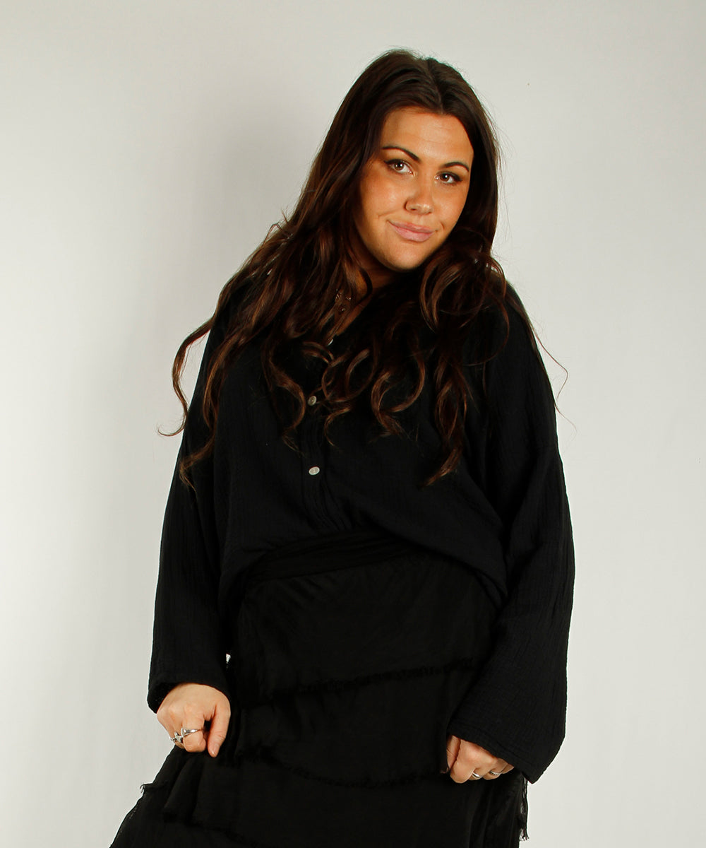 Crinckle cotton shirt, Black