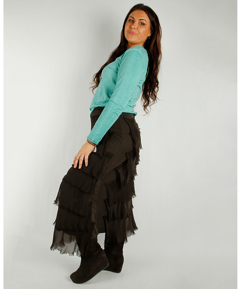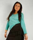 Lett bomulls genser med V-hals og smale ermer.