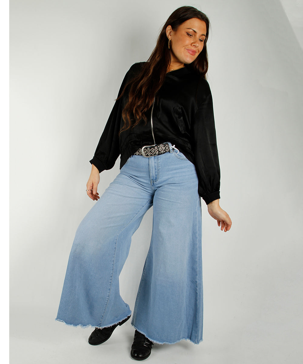 Bukser med vide bein og mid waist.
