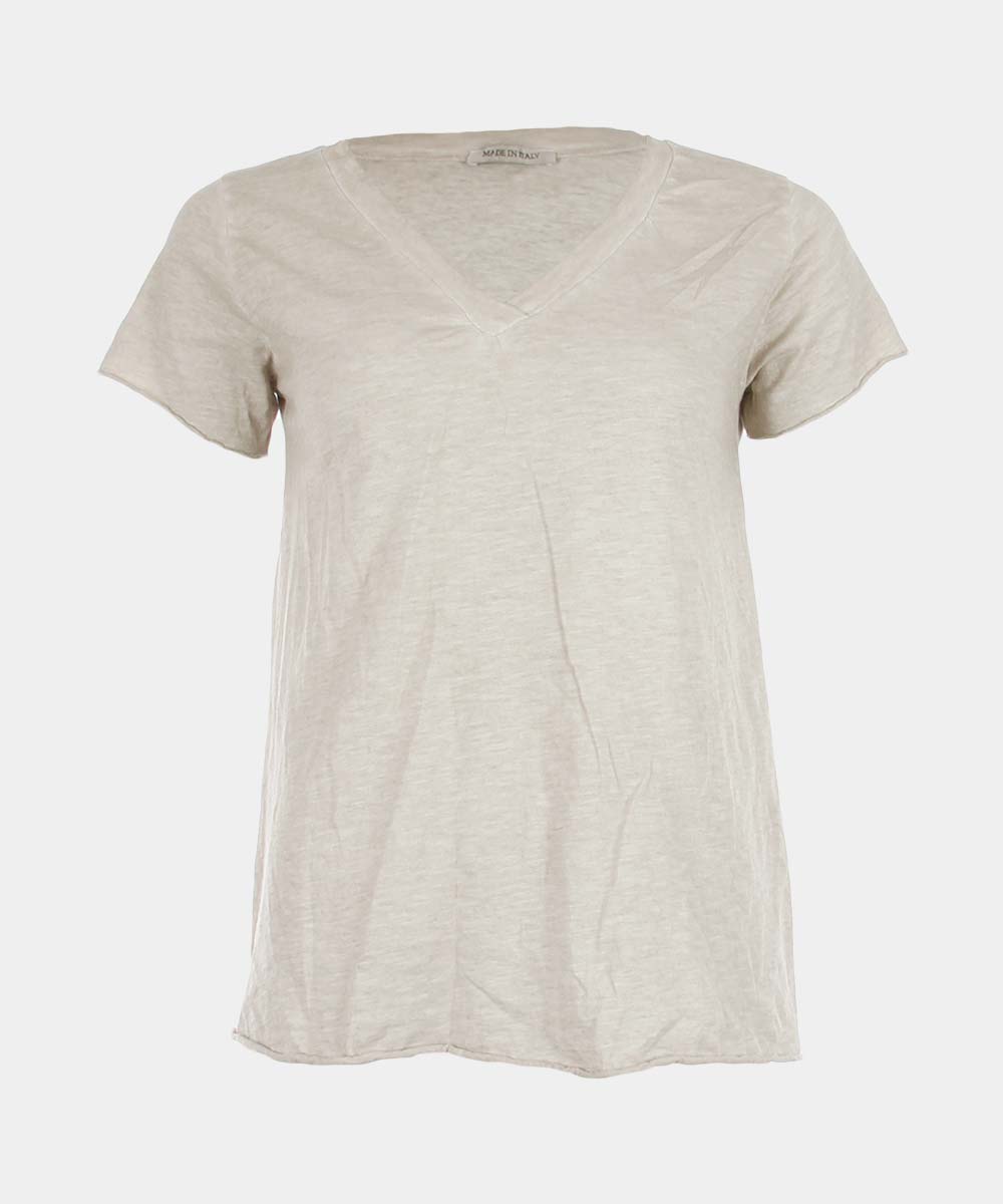 Denne stone washed T-skjorten med V-hals er et must-have i garderoben din, enten du kombinerer den med jeans for en casual look eller med en jakke for en mer sammensatt stil.