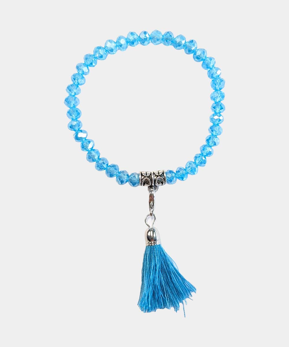 Shiny Bead Tassle Bracelet, Turquoise